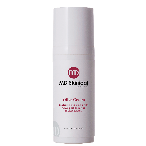 橄欖葉含有豐富抗氧化成份,其營養能強效修復脆弱及疲倦的肌膚。美國FDA認證生產的MD Skinical橄欖高效再生面霜加入高濃度橄欖葉萃取及透明質酸,能迅速為肌膚注滿水份並修復細胞,重建肌膚水分屏障及減淡細紋。質地輕柔的面霜更加入維他命E成份,有效平衡肌色不均及減淡疤痕色素沉澱,讓肌膚重拾光澤。